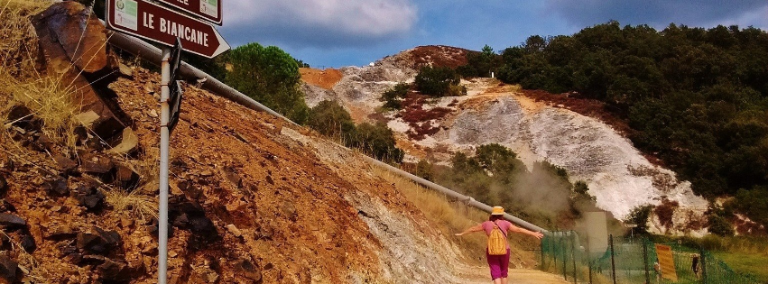 Da Pomarance si prosegue per la N° 439 in leggera discesa e falsopiano fino a Croce Bulera, poi in leggera salita fino a Montecerboli, dove si lascia a sinistra la strada per Lardarello (bella zona di soffioni boraciferi) e al bivio a destra, che porta attraverso curve e saliscendi a Serrazzano. Da qui si va in forte discesa, poi in falsopiano, infine in salita e di nuovo in discesa a Canneto. Si prosegue in leggera discesa e breve risalita fra i boschi si arriva a Monteverdi da dove la strada, ampia e con molte curve, procede in leggera discesa e poi in falsopiano. In località Capo di Monte si lascia a destra la strada che scende a Castagneto Carducci e si a sinistra, scavalcando il crinale, a Sasseta. All’entrata del borgo si ignora l’indicazione per Suvereto e si continua per una strada che scende tortuosissima fra lecci, querce e più in basso fra oliveti e campi coltivati, si giunge quindi a Suvereto. Da qui si prende a destra la N° 398 che corre in piano verso Venturina e da qui si segue le indicazioni per Piombino da dove si prende il traghetto che in 1 ora ci porta a Portoferraio. Una volta giunti sull’isola decidiamo di andare a campeggiare a Enfola, 6 km di salita per arrivare in un posto splendido e isolato!